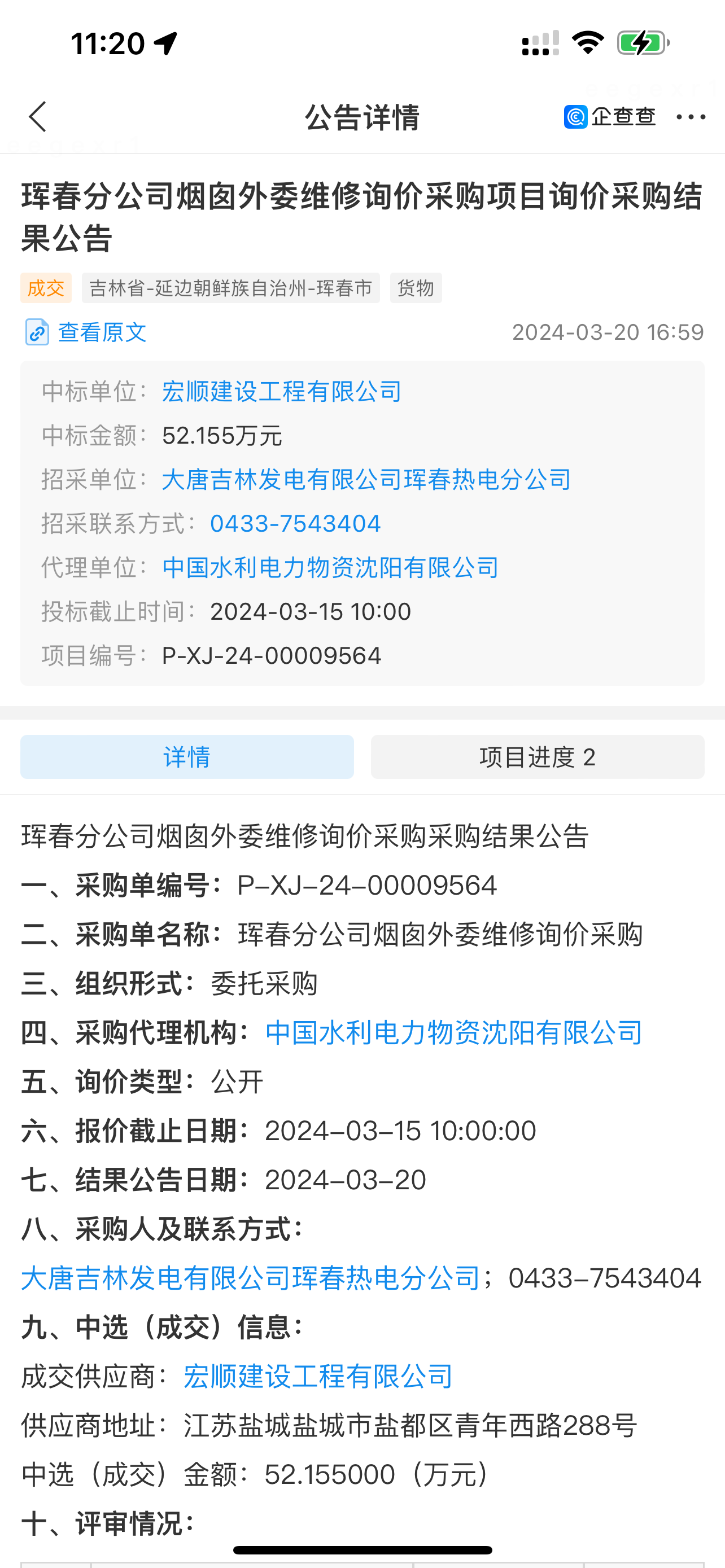 熱烈祝賀我公司中標大唐吉林琿春熱電公司的煙囪外委維修工程